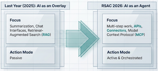 At the 2026 RSA Conference, the dominant phrase was “Agentic AI.” Last year, nearly every company was eager to sprinkle AI over existing products, usually in the form of summarization, chat interfaces, or retrieval-augmented search. This year was different. Vendors were talking about AI performing multi-step work through tools, APIs, connectors, and orchestration layers. RSAC itself previewed Agentic AI and Model Context Protocol (MCP) as major themes, and that matched what I heard repeatedly on the floor. To me, there were two key trends under the broader theme of Agentic AI.