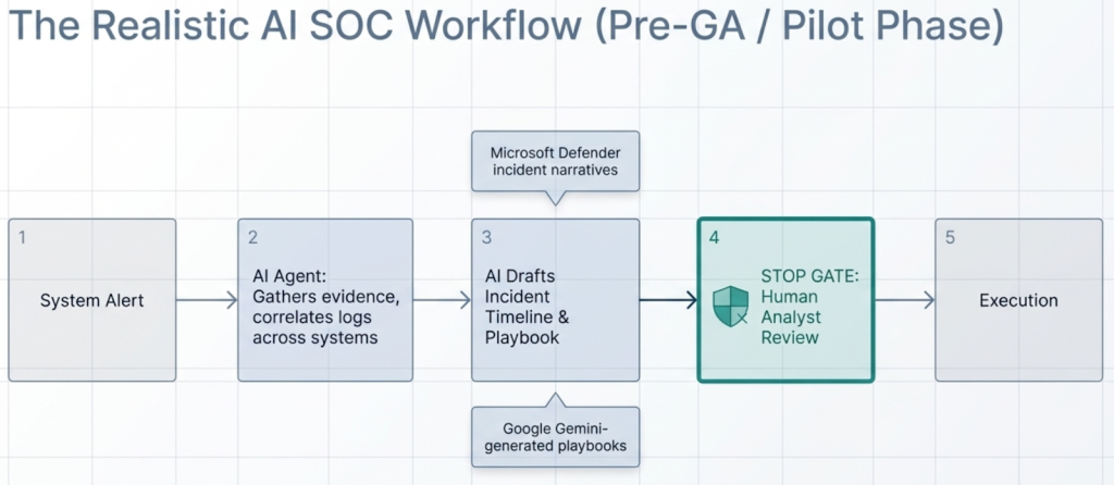 Google’s direction is similarly promising. Google Cloud has been openly describing an “Agentic SOC” in which AI accelerates triage and investigation while humans remain in charge. Its Triage and Investigation Agent exposes evidence, reasoning, confidence, and suggested next steps rather than pretending to be an oracle. Google’s documentation for Gemini-generated playbooks, which are marked Pre-GA and are explicitly designed for analysts to review step by step before execution. To me, this is the right kind of realism. There is real value in having AI draft a playbook or assemble the context for a response. There is much less evidence that we should be turning incident response over to autonomous agents anytime soon.